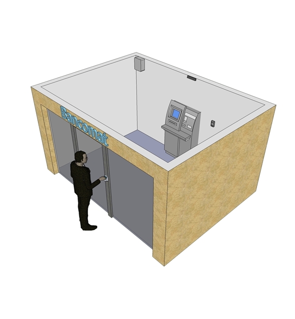 Sistemi stand-alone (autonomi) per controllo accessi e gestione permanenze in locali self-banking, Atm, Bancomat.