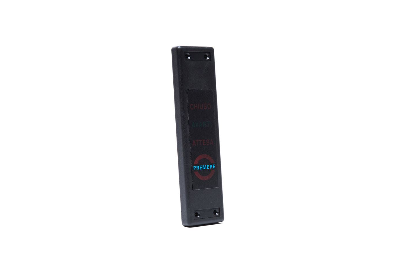 Dispone a bordo di 3 messaggi luminosi serigrafati su pannello di policarbonato antigraffio: “AVANTI”, “ATTESA” e “CHIUSO” ed illuminazione pulsante richiesta transito “PREMERE”.