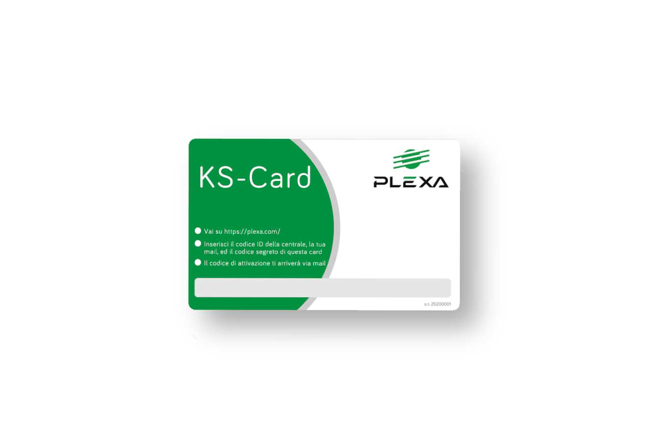 Card con codice univoco per riscattare software (KS e PlexaGo) e servizi (assistenza).