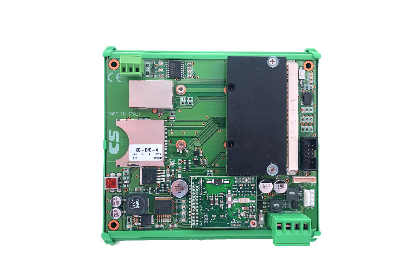 Il contenitore su guida “omega” e i cablaggi su morsetti estraibili velocizzano l’installazione e la manutenzione.