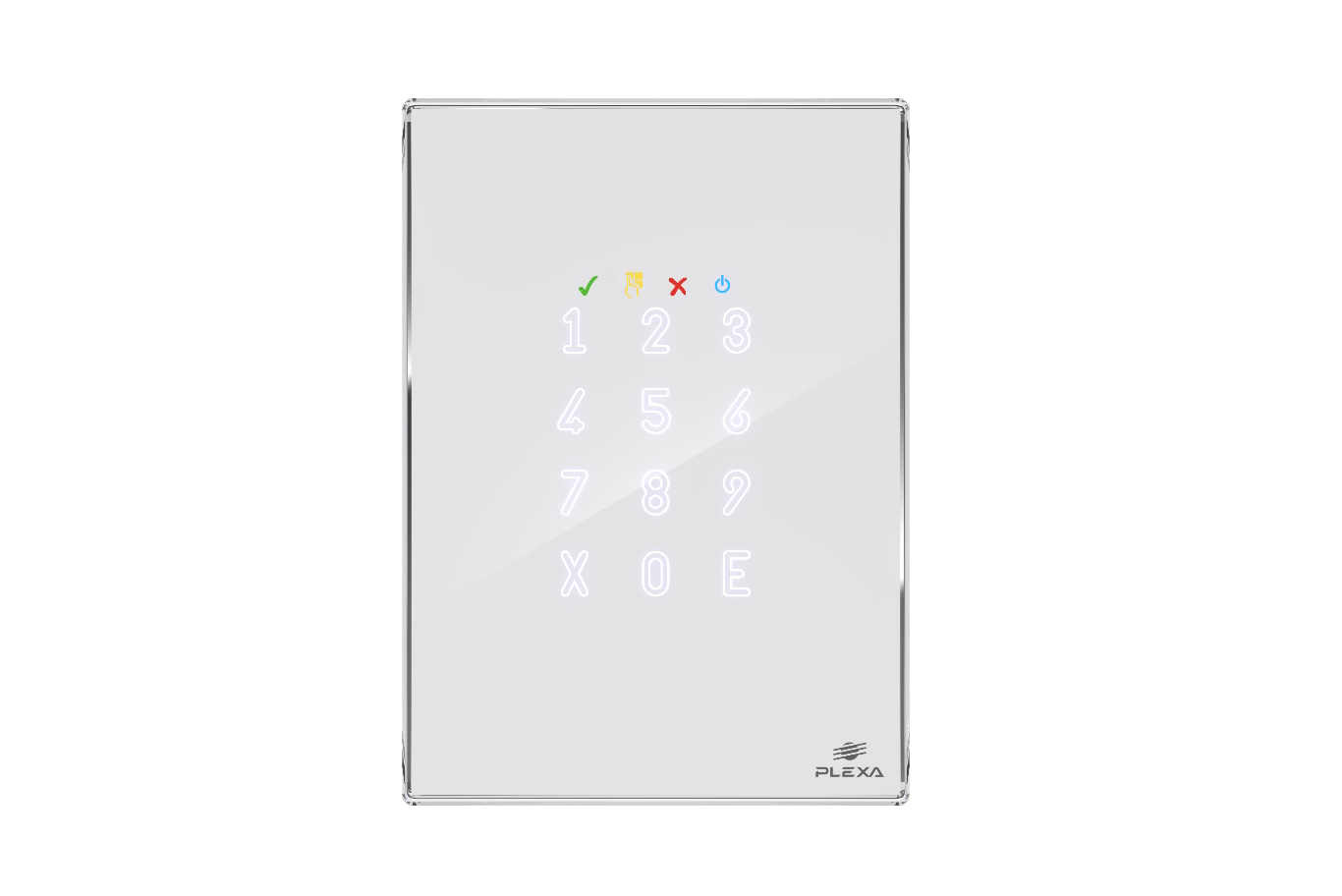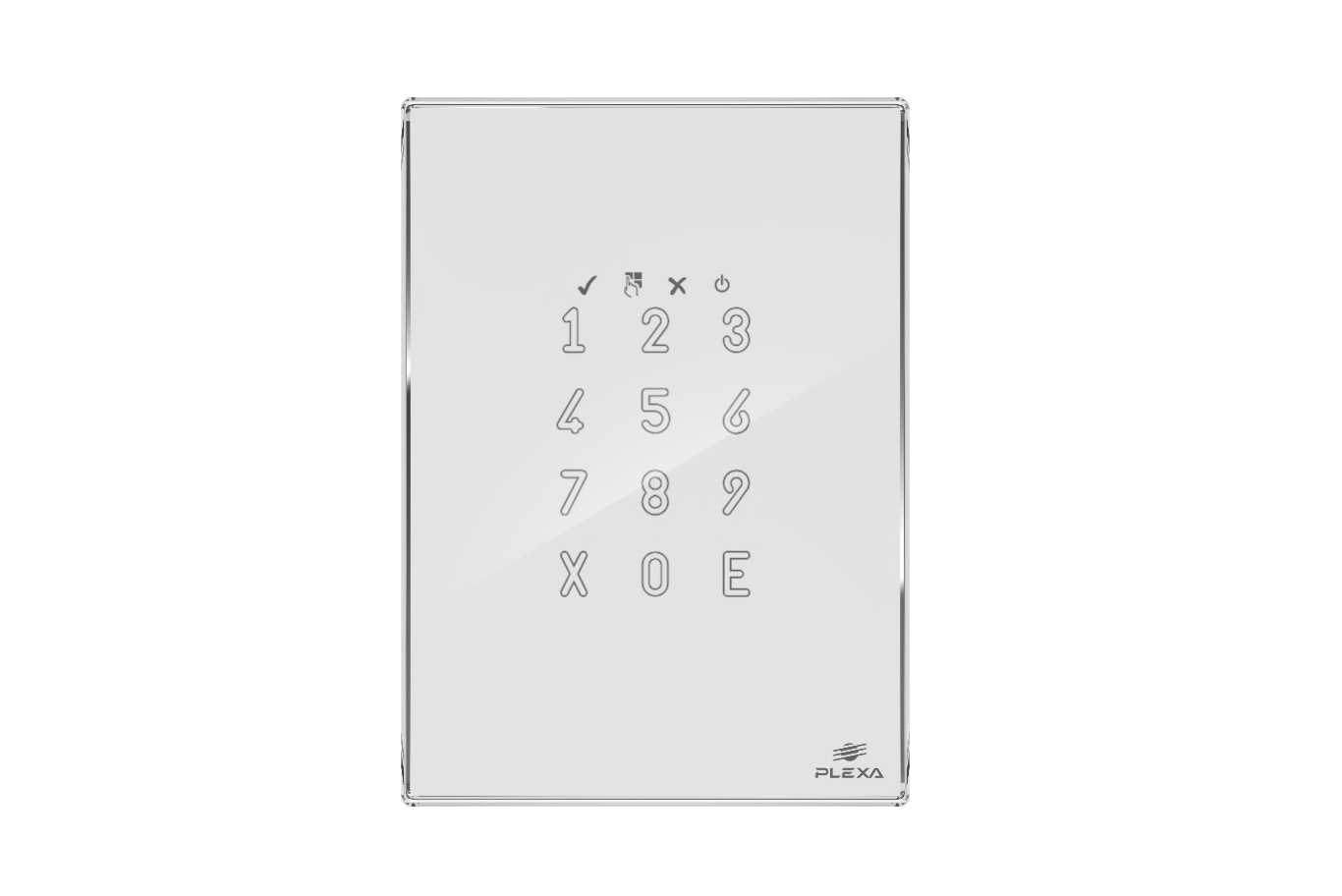Ecco il nuovo lettore tastiera della serie Iris con funzioni Easy-touch; basta sfiorare la superficie in vetro per digitare il proprio codice di accesso o il PIN. La superficie in vetro temperato Bianco Neve e la cornice cromata di Iris donano al lettore un design raffinato che lo rende adatto ad ambienti interni di uffici, sutdi e abitazioni.