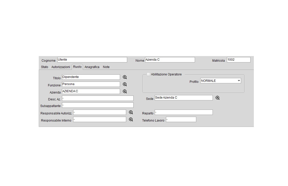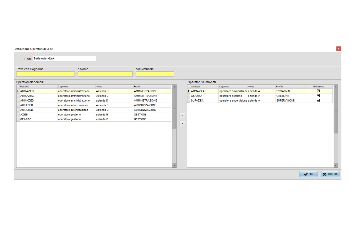 Si possono configurare degli Operatori di Postazione che possono gestire i dati di tutte le Sedi senza nessuna restrizione sia nella visualizzazione che nella modifica.